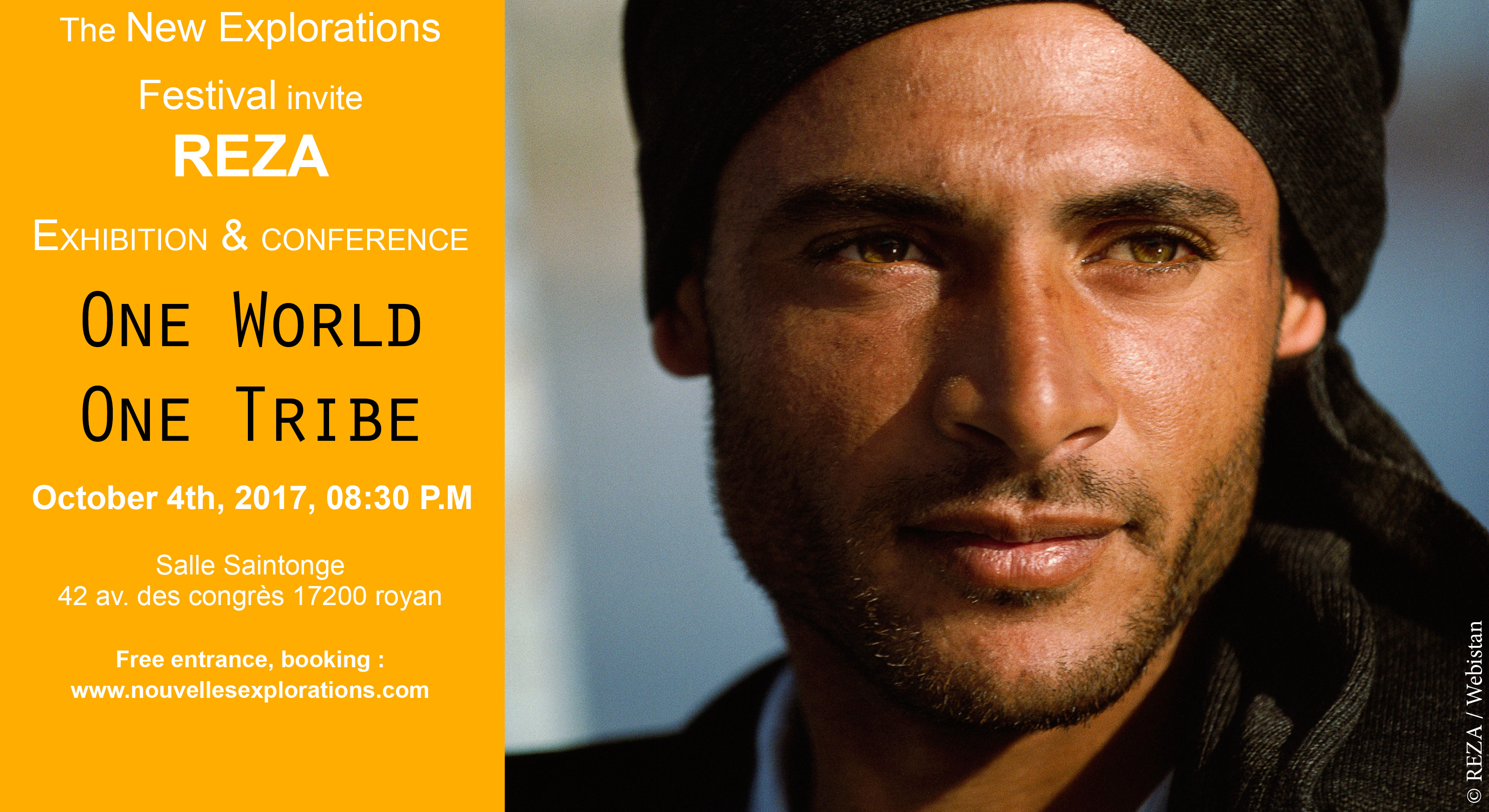 As part of the second edition of the Festival of New Explorations from 4 to 7 October 2017 in Royan, the Webistan agency participates through the exhibition of some of the most emblematic photographs of the photographer Reza and coordinates a conference, around the theme One Earth, One Family.